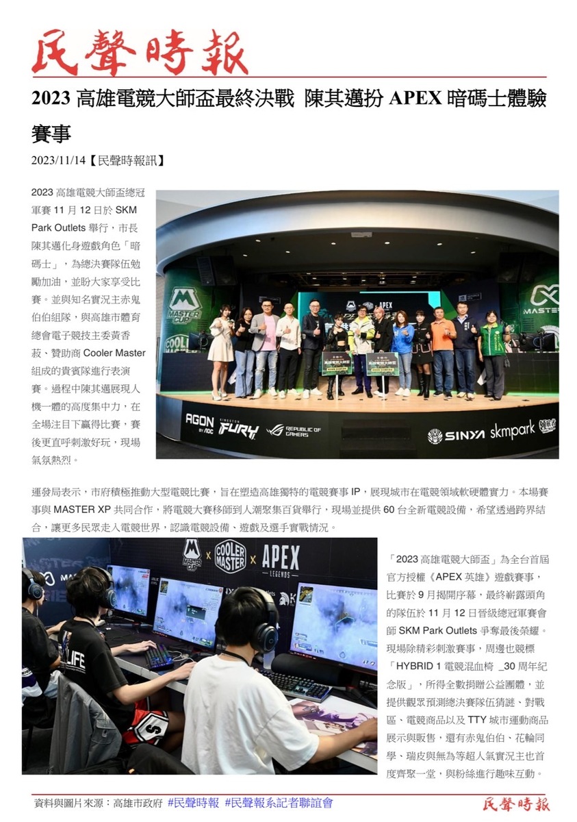2023高雄電競大師盃最終決戰 陳其邁扮APEX暗碼士體驗賽事 【民聲時報訊】2023/11/14