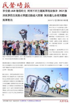 享受最chill暑假時光 周周不同主題風箏現身旗津 2023旗津風箏節及氣墊水樂園活動盛大開幕 陳其邁化身潮男體驗風箏衝浪 【民聲時報本報訊】2023/07/25