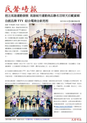 挹注高雄運動發展 高雄城市運動商品聯名羽球天后戴資穎自創品牌TTY 結合電商全新亮相 【民聲時報訊】2023/08/18