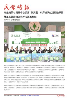 高雄港第七貨櫃中心啟用 陳其邁:市府扮演航運堅強夥伴 奠定高雄港成為世界海運的樞紐 【民聲時報訊】2023/08/19