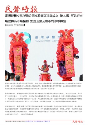 臺灣碳權交易所總公司高軟園區揭牌成立 陳其邁:更貼近市場並轉為市場驅動 加速企業及城市的淨零轉型 【民聲時報訊】2023/08/10