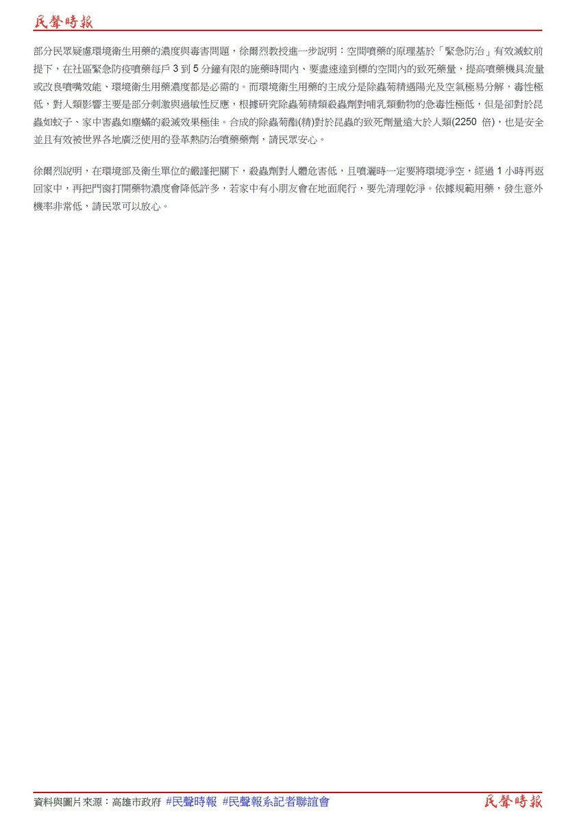 防治登革熱疫情延燒 學者專家:噴藥滅蚊是有效且必要手段 【民聲時報訊】2023/10/03