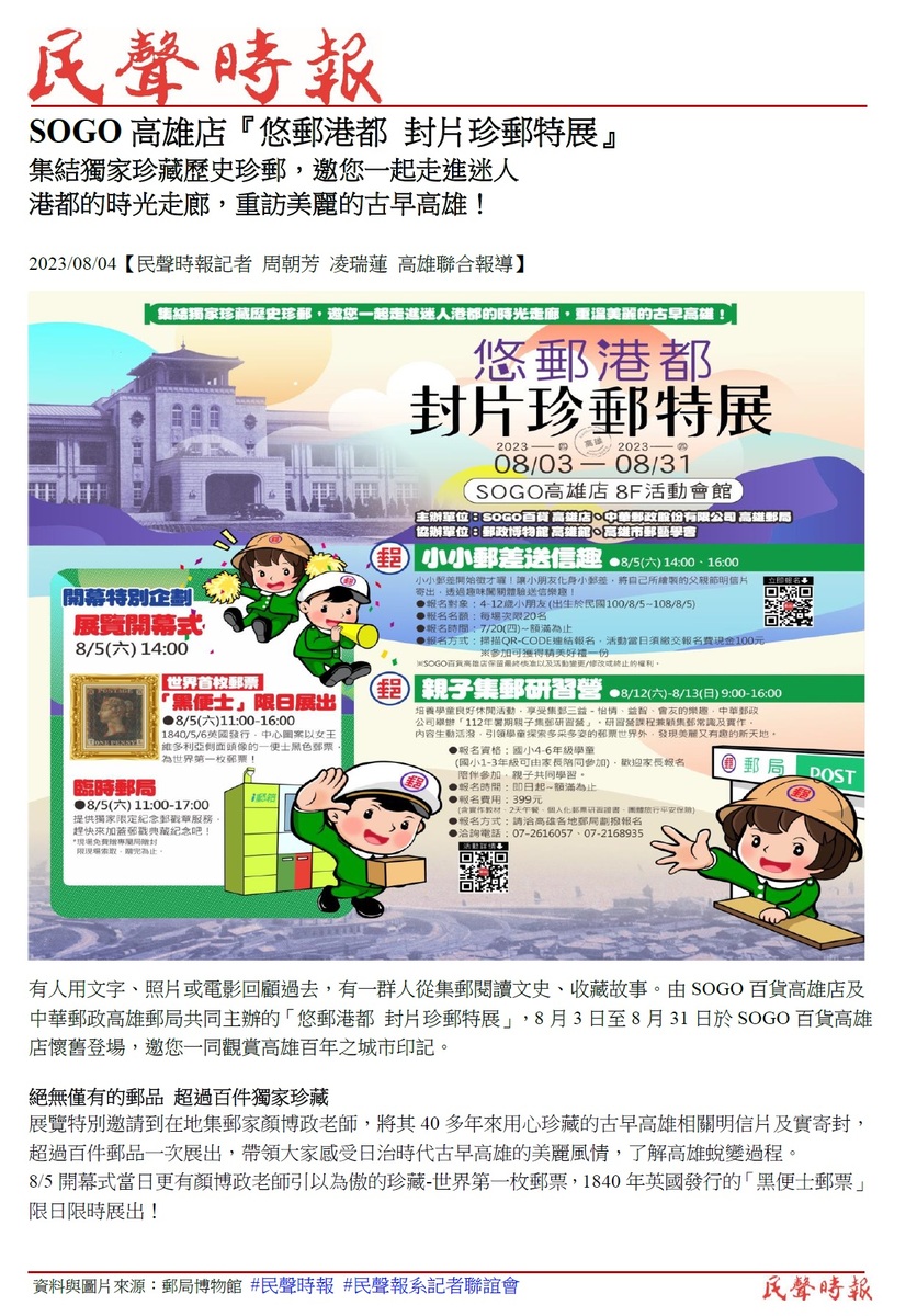SOGO高雄店『悠郵港都 封片珍郵特展』 【民聲時報記者 周朝芳 凌瑞蓮 高雄聯合報導】2023/08/04